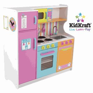 Kids will feel just like mom and dad when they cook up fun with the Deluxe Big and Bright Kitchen. This wooden kitchen is cute, colorful and built to last. Refrigeratoroven and microwave open and closeLength 42"Height 42.8"Width 17.5"Age 3Material MDF, PVC, T-MoldingStyle/Theme Traditional